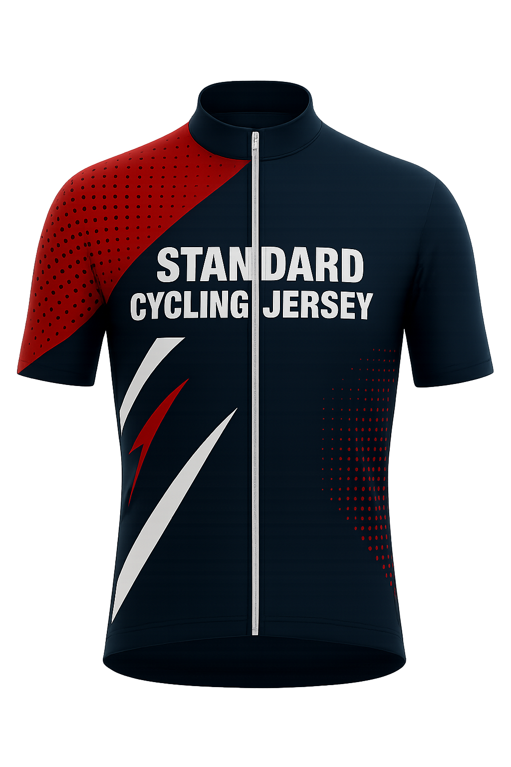 Cycling jersey made of polyester knit with a high content of elastomer Megalesatic 200g or mesh polyester knitted fabric Tear 1 130g. The cut of the T-shirt perfectly fits the body. Zippered on the front, pockets on the back and additionally a small waterproof pocket with a zipper. The material perfectly drains water to the outside, very comfortable. Bottom of the T-shirt finished with a silicone tape to prevent the T-shirt from pulling, the product is available on request.