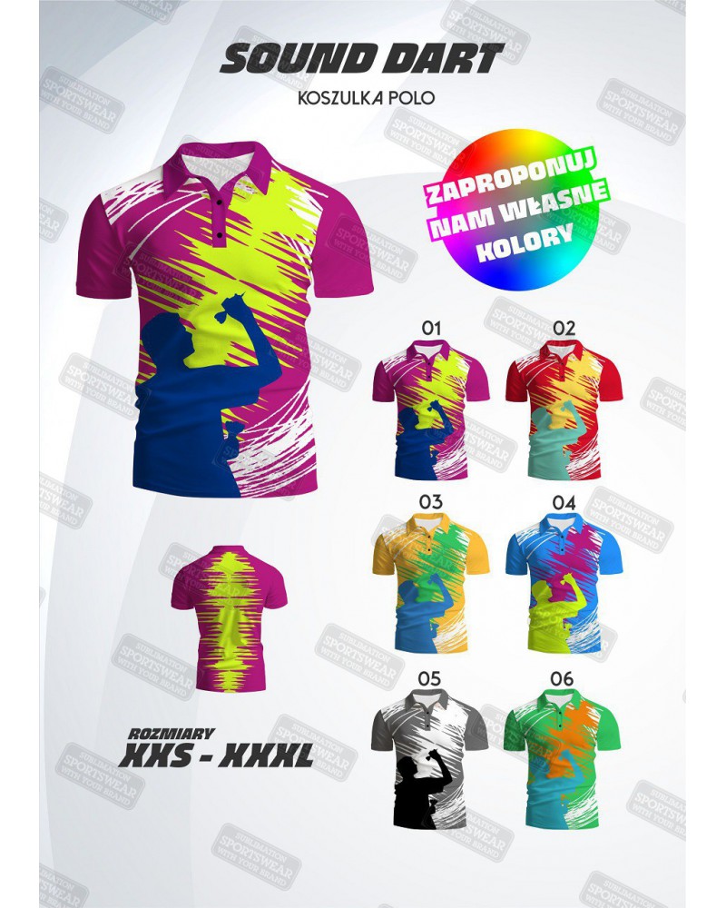 Koszulka polo wykonywana z dzianiny poliestrowej mikro. Krój koszulki luźny. Delikatnie usztywniony kołnierzyk. Zapinana na guziki lub suwak. U dołu dwa boczne rozporki wzmocnione ryglem. Możliwość wykonania koszulki z kieszonką.