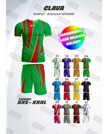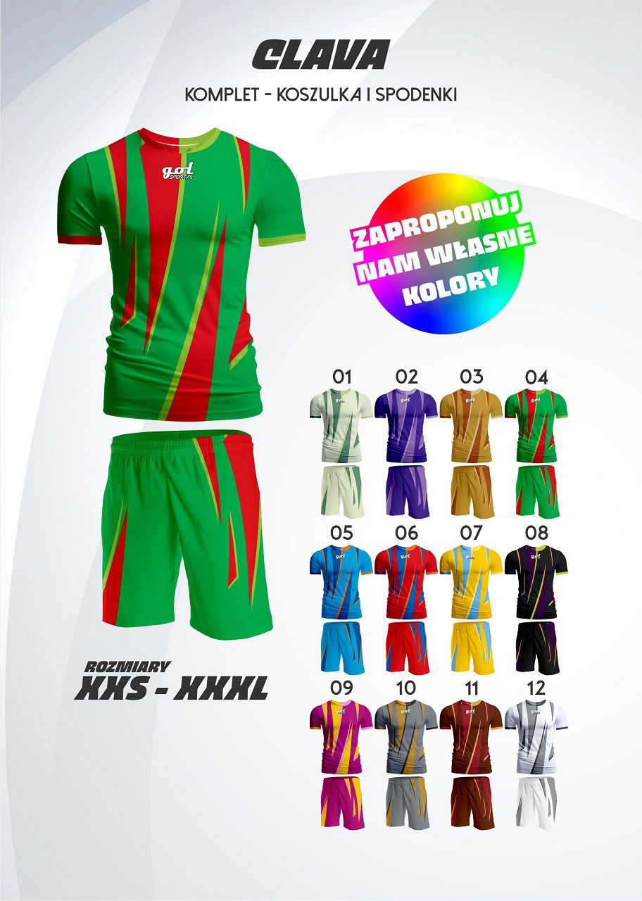 Komplet sportowy wykonany z dzianiny poliestrowej mikro o gramaturze 130g bardzo wytrzymałej, komfortowej i dobrze oddającej wilgoć. Komplet składa się z koszulki oraz spodenek. Komplet w przedstawionym wzorze graficznym z małym logo Golsport.pl, wykonywany na zamówienie.